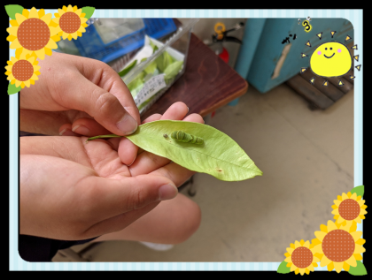3年生の児童が見つけてきた、黒かったアゲハチョウのさなぎが、脱皮して緑色に変わりました。