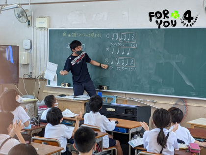 音楽科の授業では、音楽のリズムにのって手拍子することで、音符や休符の意味を知ることができました。