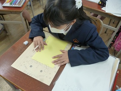 下絵ができたら、絵具での色付けです。早い子はこの段階まで入ったところでチャイムでした。