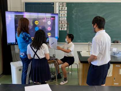 今日もteams集会です!今朝はうまくつながったようで、各教室からクイズの答えを発表している声が聞こえてきました。
