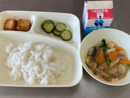 今日の給食はたくさんの種類をとることができるメニューです!