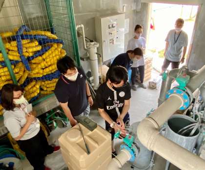 学校では、清掃も終えて、今日は浄化装置の機械点検と動かし方の研修を実施しました。