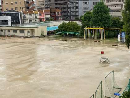 運動場もご覧の通りです。子ども達もうらめしそうにしていますが、お天気には勝てません・・・。