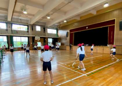 講堂ではバトミントンクラブ、卓球クラブが活動していました。