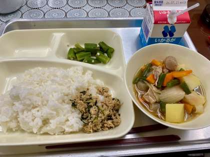 『豚肉とじゃがいもの煮もの』&『オクラの梅風味』
