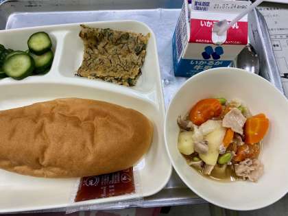 一学期最終の給食は、沖縄県の家庭料理の一つ、『ヒラヤーチー』です。