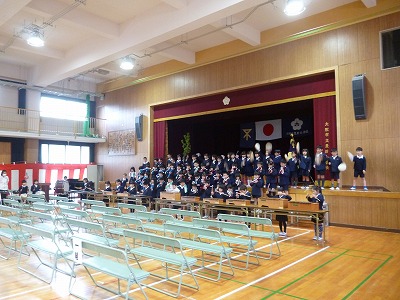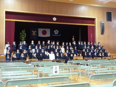 2年生は、明日の「おむかえのことば」のリハーサルです。