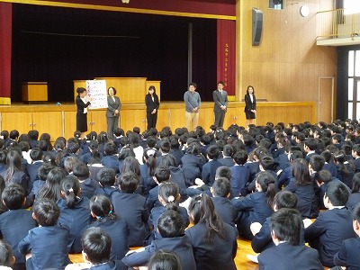 まず、昨年度末の移動で本校を去られた教職員の方々の報告をし、その後、4月から本校に着任された8名の教職員の方々(後2人の方は別の場所で対応中です)の紹介をしました。(詳しくは本日に配付した学校便りをご覧ください。)