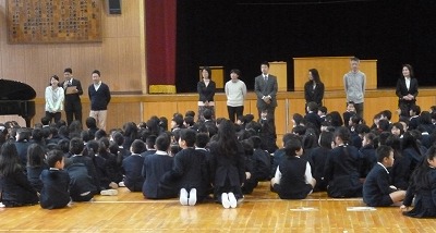 そして、1学期の学校生活についての話を聞き、校歌を元気いっぱいに歌いました。