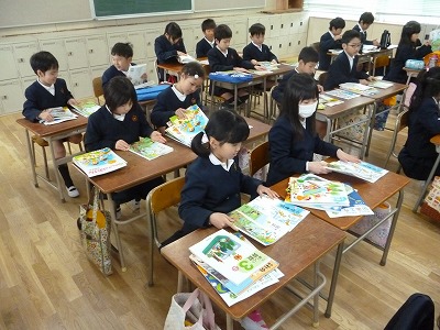 早速ですが、ドリルを使って、前の学年の復習をしているクラス、明日に向けての宿題のあるクラスもありました。