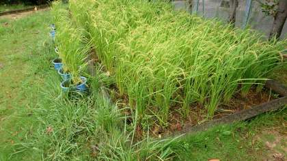 みなさんの育てているお米のようすです。稲穂が実り始めました。どのように生長しているか確認しましょう。