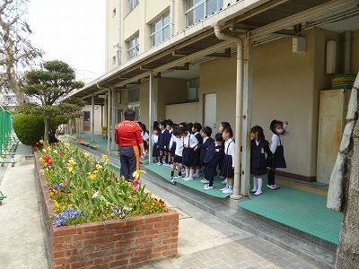 そこで、今日は担任の先生に引率されて「学校たんけん」です。