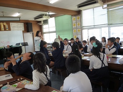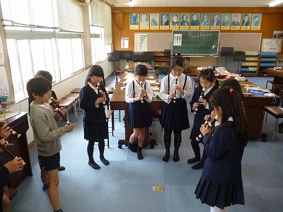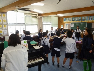 今日は、「ロンドン橋」を日本語と英語で歌ったり、「子どもの世界」を2グループに分かれて歌とリコーダで合奏したり、とても楽しそうに授業が進んでいました。