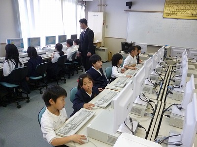 教頭先生が助っ人に入って、コンピュータ・マウスの使い方を教わりました。