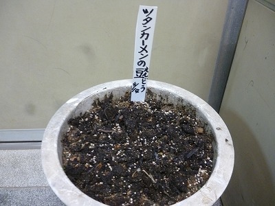 理科室前に古代のインゲン豆が・・・ (4月17日)