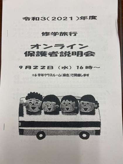 10月14、15日の一泊二日で実施予定の修学旅行。コロナ禍の中ですが、子ども達には仲間とともに過ごす思い出の時間として健康に留意して実施したいと願っています。