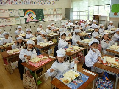 1年生も先生に教えてもらって、おかずやご飯の取り分けがとてもうまくなりました。