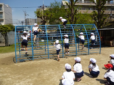 「のぼり棒」は、さすがに上まで登りきる子は、まだまだ少数で、このクラスでは2名いました。