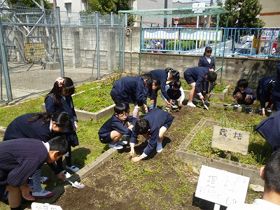 実験に使った種のうち、芽(根)のでできた種を、学習園を耕して植えつけました。