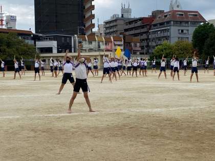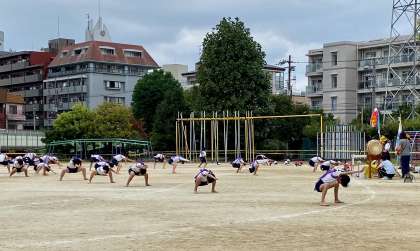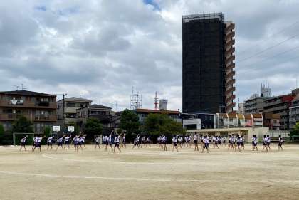 動きが大きくなって、掛け声がそろい、運動場に響きます。
