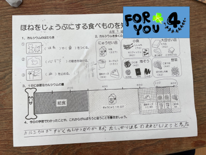 4年生は栄養指導で骨を丈夫にする食べ物について学習しました。