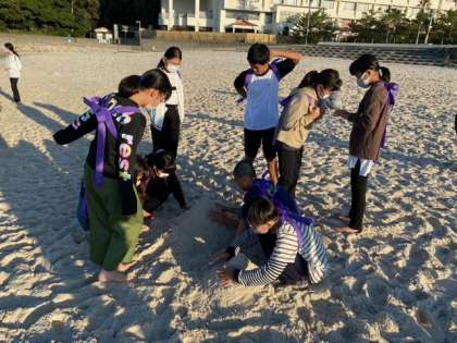 貝も拾いたくなるよね!海にも足つけたくなるよね・・・。