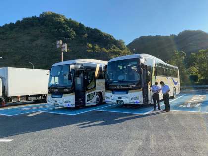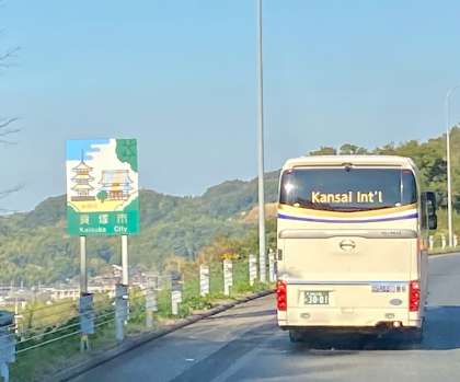 バスは貝塚市から岸和田PAです!予定より遅れています。