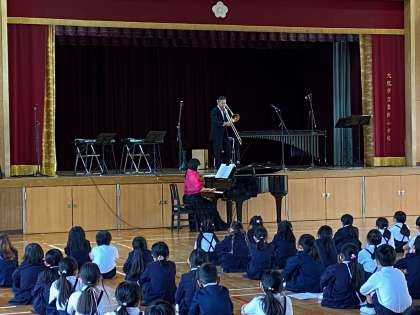 この写真、舞台の上で演奏している男性が持つ楽器は何でしたか?