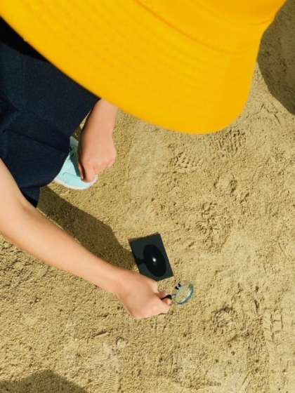 虫眼鏡を使って、太陽の光を狭いところに集めるとどうなるのかを実験しました。