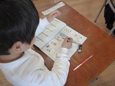 ていねいな数字を書く練習、イラストから数字を考える問題と頑張っていました。