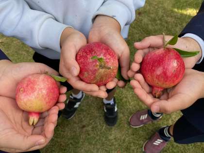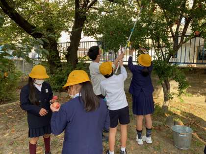 4年生はザクロの収穫でした。一人一個とはいきませんが、グループでわいわい、ガヤガヤしながらいただきました!