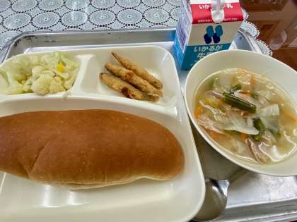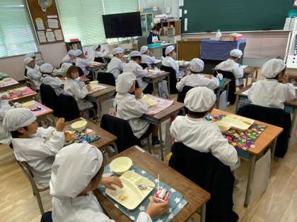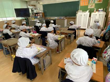 一年生も無言給食しながらよく噛んで食べることができました。