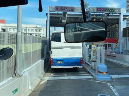 阪神高速に入りました(5年・自然体験学習)