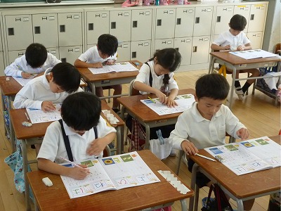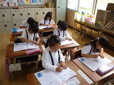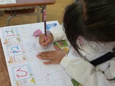 クラスによって少し進度が違いますが、ひらがな50音の半分近くまで進みました。