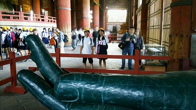 東大寺大仏殿では、大仏の大きさや手のひらの大きさに驚きました。