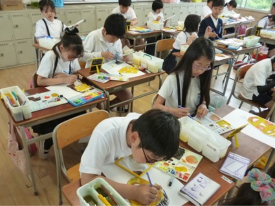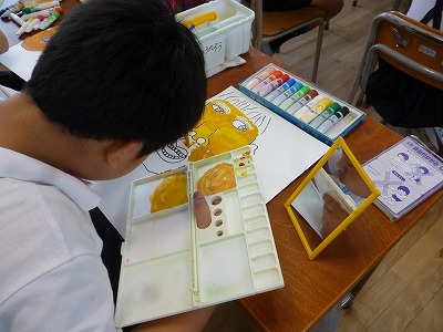 手鏡で時折確認しながら、微妙な色合いをていねいに表現していました。