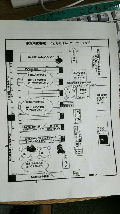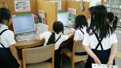 図書館の方では、パソコンを使って本の検索をしたり、図書館の地図を見ながら読みたい本を探しました。