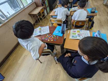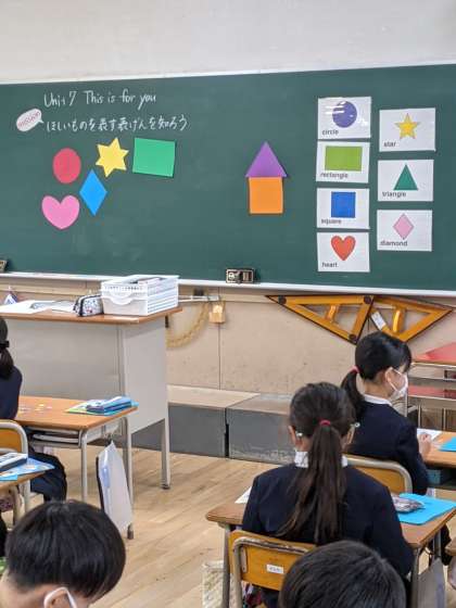 また、circle,star,squareなどの形を英語で表現することができました。