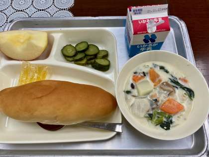 きのこのクリームシチュー&きゅうりのバジル風味サラダ