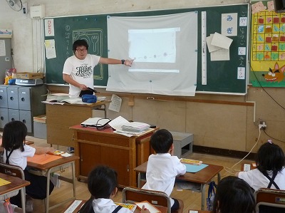 時折、先生は子どもたちの作業途中をタブレットで撮影し、拡大投影してみんなに説明をしていました。
