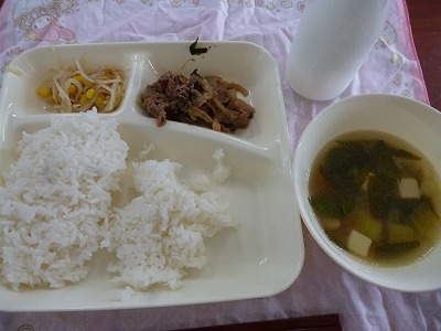 当然のようにプルコギは子どもたちに人気がありますが、お替りで先生にお肉とたれをご飯に直接かけてもらって丼にしておいしそうに食べている子もいました。