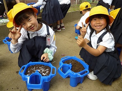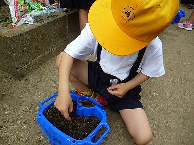 そして、やさしく土をかぶせ、元肥となる化成肥料も散らしました。