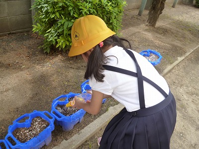 1年生 アサガオに水やり (5月18日)