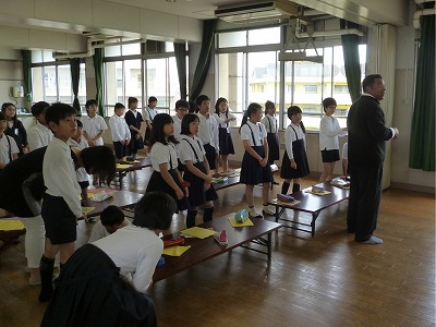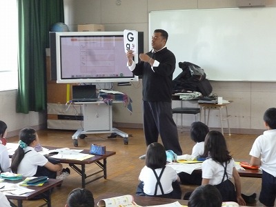 これは、ともだち5人に英語で質問をしに行き、返事をメモしていました。
