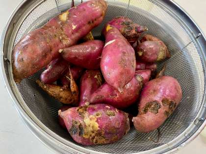 学習園で収穫したさつまいもをきれいに水洗いしていただきます。