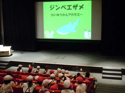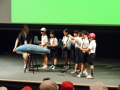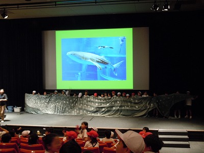 ホールで、ジンベエザメについてのお話を飼育員さんから聞きました。