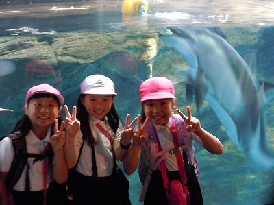 班で写真を撮るときに、イルカが近くに来てくれました。
