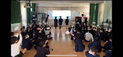 5・6時間目は、イギリス人のゲストティーチャーをお迎えしての学習を行いました。イギリスや世界のことを教えてもらったり、イギリスの遊びを一緒に楽しんだりしました。