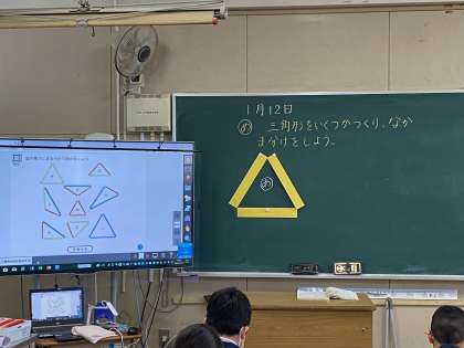 まずは三角形のなかま分けです!どんな三角形があるかなあ・・・。