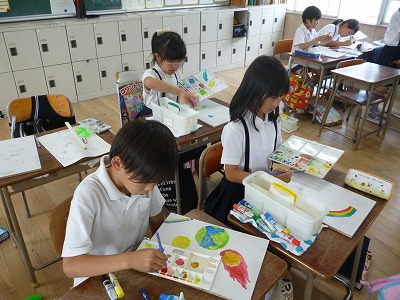作業の早い子は、実際の板材に下書きの後、絵具での色入れにも進んでいます。